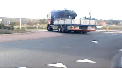 Deze vrachtwagenchauffeur verliest ongezekerde lading in de rotonde.